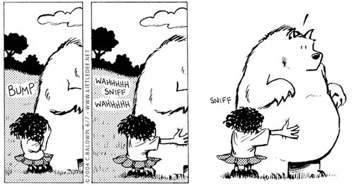 Who is Christopher Baldwin? Well, he’s currently a cartoonist for MAD magazine (how fun is that?!) and has already found great success with his comics on the web. He’s been covered in The Washington Post, Wired Magazine, Salon Magazine, UK Daily Telegraph, Newsbytes, and even appeared on NPR. He has been best known for two long successful runs of webcomics, Bruno, which ran from 96′ to ‘07 and is about an introspective young woman, and Little Dee a wonderfully charming comic about a young girl who gets lost in the woods. (More about Dee in a bit.)