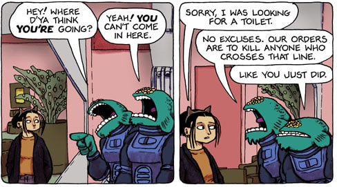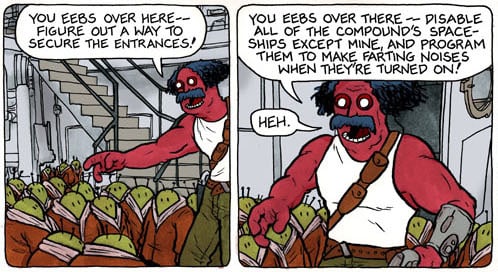 To find out what the G.O.B is, who the Earthlings are and how cool Nogg is, you’ll just need to start reading Spacetrawler from the start. And now is a great time. Since it only just started in January with a twice a week schedule, catching up is very easy. Trust me, you won’t regret it.